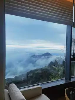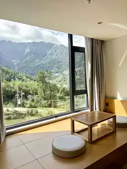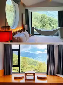 Stepping into the lodge is like entering a tranquil paradise. Each of the 36 uniquely designed guest rooms bears a poetic name—High Rest, Wine Tasting, Book Reading... When the first rays of morning sunlight gently stream through the floor-to-ceiling windows, you'll wake to rolling mountain ranges and swaying bamboo forests, framing nature's grandeur like a masterpiece. As night falls, lie on the viewing terrace where the vast starry sky feels within reach, and the dazzling Milky Way seems to flow right before your eyes.