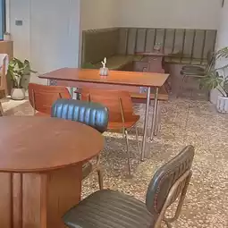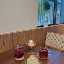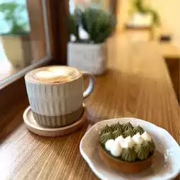 Hidden in the Nankan Market is the coffee shop "Rui Café". The "蕋" in "蕋咖啡瑞 Café" is pronounced as ㄖㄨㄟˇ. The entrance is mainly pure white, matched with wooden window frames and wooden doors, which adds a lot to the overall texture. The simple LOGO design is also quite beautiful. The interior of the store has a Japanese nostalgic style, such as the retro floral tile floor, the seating area inside also retains nostalgic tables and objects, and retro green sofa seats.