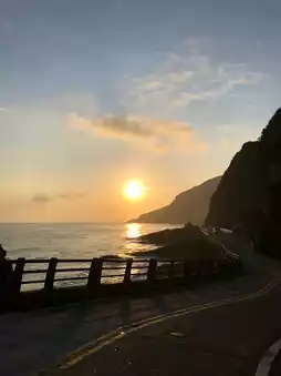 The sea surface was shining with golden light, and even the outline of the mountain became soft. There were not many people at that time, only us sitting on the motorcycle, watching the sunset slowly sink, my heart suddenly felt very calm.