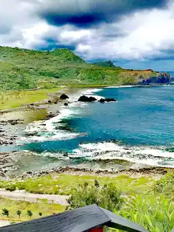 At the end of the trail, there's a pavilion with stunning views. You can see the entire eastern coastline of Green Island, with a wide-open vista. The breeze there is incredibly refreshing.