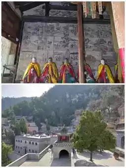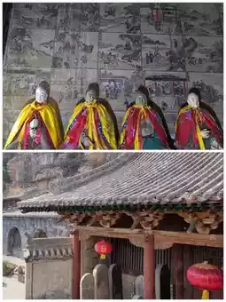 Anguo Temple is built along the mountain, with a staggered layout. The Laigong Villa is ingeniously constructed under the cliff halfway up the mountain, facing a deep valley with clear springs forming streams. The scenery is unique, and the construction is exquisite. This place is not only a sacred site for cultivation but also a perfect embodiment of the site selection philosophy of Shanxi's mountain architecture.