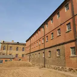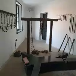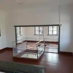 on the old wooden corridors inside the prison,