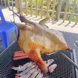 While BBQ, grill the chicken until golden brown, crispy skin and tender meat