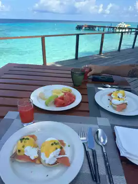 Choose your favorite restaurant in advance and make a reservation. I booked the TAI restaurant on the first night of the island, and the restaurant can also see nurse sharks. Sitting in the seaside position of the restaurant in the evening, while admiring the sunset on the sea, while tasting omakase, the atmosphere is absolutely.🍹