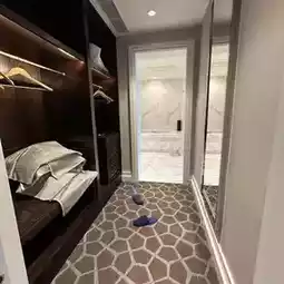 The dressing room features a large walk-in closet and mirror for easy dressing.