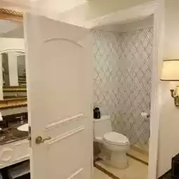 This time we stayed in a royal suite, which is designed in European courtly luxury, with a separate sunken living room, a double sparse and dining table! The accommodation area has a king-size double bed, which is spacious and well-equipped with flexible mattress and comfortable bedding! The bathroom is a luxurious marble bathroom with separate bath and shower area!
