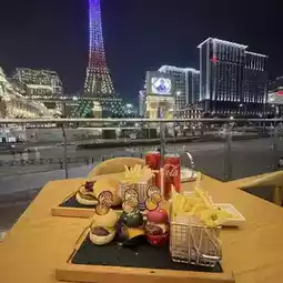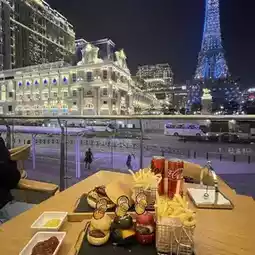 Outdoors you can see the Parisian Eiffel Tower and the hotel📸