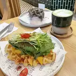 The sweet croissant waffle with cheese avocado is quite good, salty and sweet can not be beat.