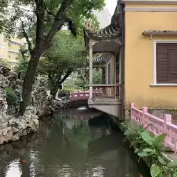 The garden was built in early 20th century by an influential businessman named Lou Kau who made his fortune from selling pork. The garden has a main pavilion with yellow facade, and the architectural design is with a mixture of Portuguese and Chinese aesthetic. The balcony in the back is particularly beautiful. The garden follows that of the Suzhou - style design. The nine curved bridge and pagoda sit in the back amongst the maze-like rock garden.