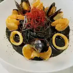 My friend said the pasta in this cafe is excellent. I ordered the squid ink seafood pasta, which is around MOP100 and very cost-effective! Although it uses frozen seafood, it can't be said to be full of freshness, but the portion is not small. The squid ink is smooth and thick without being greasy, and the taste is sweet (yes, it is sweet). Each piece of spaghetti is covered with sauce, and the mouth is full of black after eating it 😂 Because I drank coffee in the morning, I ordered a pot of berry roselle tea, which is sour and sweet and very appetizing