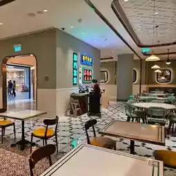 There is a Sun Brother Ice House in the Lisboa Hotel. The entrance is simply decorated, but the interior is very spacious. From the nostalgic neon signs, ceiling fans, old-style red leather sofa booths to the floor tiles that use a mix of various mosaic tiles, the design style of the 1960s and 1970s comes to life, which is very consistent with the theme of the mall. The restaurant specializes in classic ice house cuisine, light snacks, fried noodles, rice, tea, etc. It also has limited edition Macau-Portuguese dishes, all of which are authentic nostalgic Macau delicacies. Pre-purchase package tickets online to get discounts.