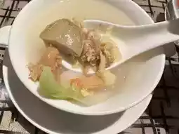 Walking by I saw that he had a milk soup family portrait, should be a similar seafood assorted soup? I saw shrimp, bacon and some egg strips, quite rich and good to drink 👍🏻