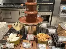 There is no shortage of desserts, with many cakes, pastries, ice cream, chocolate fountains.