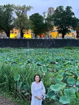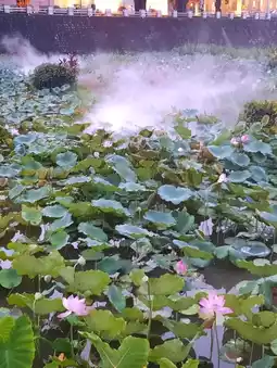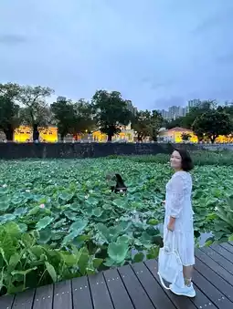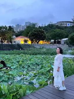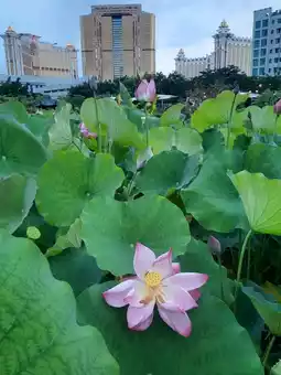 I went to Macau in mid-June, just in time for the Lotus Festival in Long Wan Pu Yun. In addition to a kind of lotus on display in a water basin, there are also lotus flowers that naturally grow in the lake, which are blooming in midsummer. Walking on the wooden walkway on the lake, surrounded by lotus reeds, the elegant Tiffany Blue color Dragon Ring Portuguese building complex is complemented, while on the other side there is the splendid Galaxy Hotel as a backdrop. Small boats and white smoke are placed on the lake, and paths are opened. Visitors can walk into the lotus flowers, which is like a fairyland. The security staff was also very nice and took the initiative to help our family take a group photo.