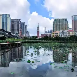 Taipa, Macau is not only the bustling Guan Ye Street. It turns out that there is a quiet artificial lake wetland opposite Long Wan Pu, which is in strong contrast with the Venetian not far away. The wetland is covered with reeds and other aquatic plants 🌾, and is also the habitat of many fish 🐟 The land, attracting wild birds 🦆 to come to feed, so this is also a good place for bird watching 🔭 🐦, surrounded by wetlands with flat artificial trails for tourists to stroll and enjoy various natural ecology up close, to the old town of Taipa can also come here to get close to nature.