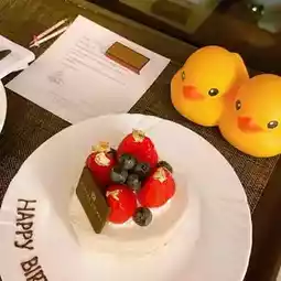 The staff sent a heart-shaped cake to our room in the evening. It was a surprise, very delicious, and weighed half a pound.