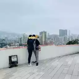 Then we went to take the Matsuyama bus, so it happened to have a free ride, very lucky😃 went up to the left Matsuyama Municipal Park, there is a Eastern Fortress and lighthouse, is quite a good photo spot 😉 also saw some little couples here selfie 😊