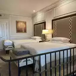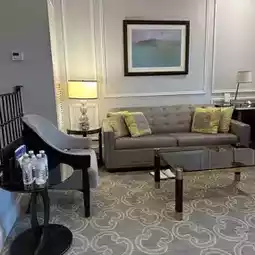 The whole family stays, the rooms are clearly divided, the living room overlooks the Taipa landscape and the hotel pool view, and there is a sofa bed plus two queen beds, the toilet is separate from the bathroom.