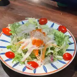 Japanese crab meat and hot spring egg Caesar salad (one portion (for 4 people) $38 ✔️Japanese sesame, potato and vegetable salad (one portion (for 4 people)) $38