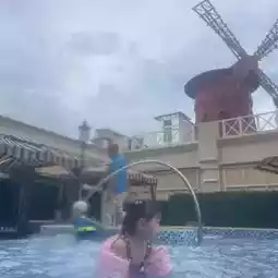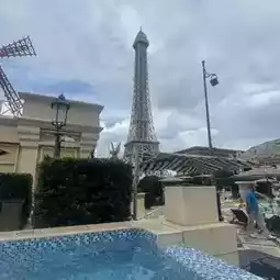 The swimming pool is very beautiful, continental architecture, located under the Eiffel Tower, enjoy the beauty of the Eiffel Tower, while  enjoy the main building of the hotel, the hotel swimming pool is divided into three parts, host about 1.3 to 1.5 meters, suitable for adults, small sub-pool, about one meter suitable for children.