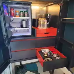 Once you enter the room is the living room + guest toilet, along with the master bedroom has floor-to-ceiling glass, full of lighting, and can enjoy the city view of Cotai, the furniture is brightly colored, with wall art hangings 🖼, full of vitality. The whole room is a smart button face, you can control the curtain switch, lighting brightness, air conditioning temperature, etc., very convenient, see the room so beautiful, beautiful mood.