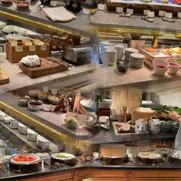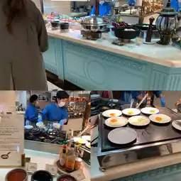Please note that the restaurant furnishing food is using a carousel, still constantly turning, filled with different flavors of milk joints, fried flour noodle rice, that is limited scrambled egg omelet omelet, fresh vegetables and fruits, and different breads, cakes🍰, very delicious😋