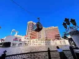 Walk straight along the water pool named "Performance Lake" in front of Wynn Palace, you can go to the cable car ride, the other ride is on the 2nd floor of the hotel.