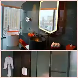 The bathroom feels luxurious, a large bathtub, beautiful view, 🥰🥰🥰🥰
