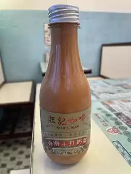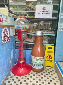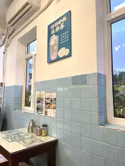 The exterior wall of Mong Kee Cafe is decorated with milk tea graffiti portraits and bottles of giant milk tea models, which is very attractive to eat and take pictures💫