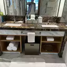 This time the suite layout is very practical and spacious enough, the two living space is not crowded at all. The rooms are fully equipped and there is nothing to impeach. There are two washrooms, which is relatively convenient. Cloakroom, bathroom, bedroom, living room are well-specified with separate space. You can also choose to take a bath or use a shower. The double bed is enough to sleep three people and is quite soft.