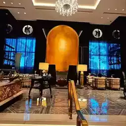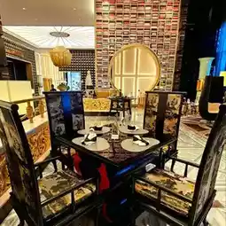 There is a restaurant downstairs from the hotel, the Expo Gallery, which is decorated with reference to the library design in Karl Lagerfeld's private mansion.