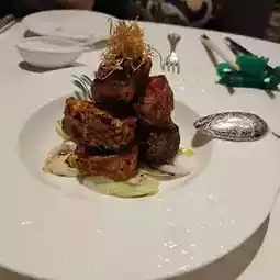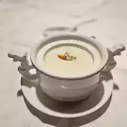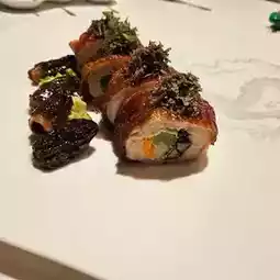 Although the name of the dish says chicken rolls, it is actually made of chicken skin wrapped inside stuffed with chicken, shrimp paste, squid rolls, black truffles and vegetables. It is a kung fu dish that can fully reflect the chef's work Come, plus a faint black truffle flavor, the second bite to eat the taste of carrots and lemongrass, as for the lamb mushrooms stewed very tasty and refreshing, the whole dish is very layered, although rich ingredients, but will not say there is a distinction.