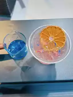 Finally, sip a cup of Sea Song🌊 The natural blue orange blossom syrup extracted from tropical blue and sweet is added to soda water🥤 Ingredients are also fresh and sweet peach flesh and lemon🍋 Drinking is refreshing and super fresh🥳