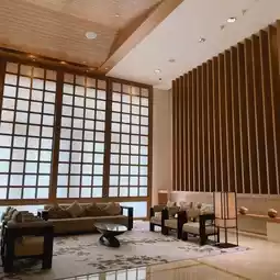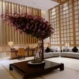 The hotel lobby is bright and simple, incorporating Japanese-style lattice windows, cherry blossom trees and other Japanese elements, full of rich Japanese culture❣️