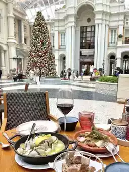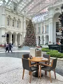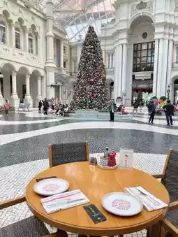 Sitting in the Skydome Square seat, you can enjoy the beautiful European-style buildings and the beautiful Christmas tree while dining. It's so chill~😌