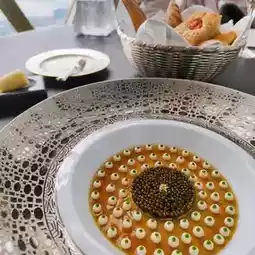 "Robuchon au Dome" is a French restaurant located in the 238-meter-high dome on the top floor of the Grand Lisboa Hotel. It is also the only restaurant in Macau that has been awarded three Michelin stars for fifteen consecutive years. In addition to the large crystal chandeliers indoors, the windows offer a 360-degree view of Macau. This view alone is worth it.