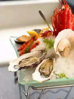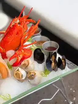 There are lobster🦞, oysters🦪, scallops, snail meat, mussels, prawns🥰