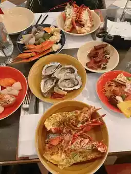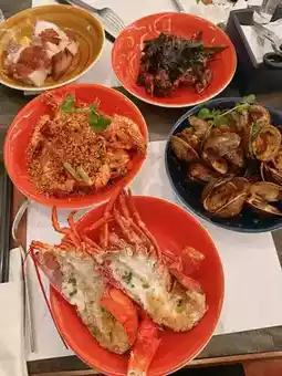 Be sure to purchase live seafood🦞You can choose the cooking method to cook seafood. The lobster is very fresh and can be steamed with cheese or garlic. I personally think that steaming with garlic is fresh enough👍🏻In addition, the scallop sashimi and oysters are very fresh and worth trying. There are roasted whole pigs and grouper porridge on the day😍You have to queue up very quickly and you can take it.