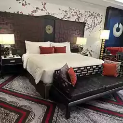 Walking into the luxurious hotel hall, there are different old Buddha designs and furnishings decorated. Walking to the guest room, the room placed a lot of furniture full of classical atmosphere, from which also permeated elements of Chinese style.