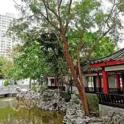 The winding path extends in a secluded manner, surrounded by ancient trees on both sides, and the sunlight casts a staggered pattern of light and shadow. The garden is also dotted with elegant pavilions, rockery bridges and other Chinese-style buildings, fully demonstrating the design wisdom of traditional Chinese gardens. From time to time, you can see elderly people strolling leisurely, quietly savoring the tranquility of this paradise.