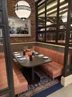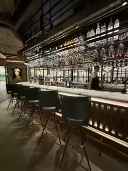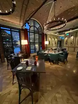 Managed by the renowned Michelin-starred chef, British culinary legend Gordon Ramsay, this authentic English pub and steakhouse boasts an elegant design filled with British interior characteristics, predominantly in brown with dark green accents.