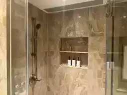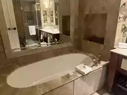 Bathroom facilities: The bathroom is designed in British European style, with marble tiles and soft yellow light creating a comfortable atmosphere. There are also cute Conrad ducklings next to the bathtub to take home? 😂