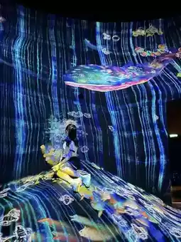 teamLab SuperNature Macau is held at the Venetian Macao’s Cotai Expo. The exhibition hall is huge, covering an area of 5,000 square meters and a height of 8 meters. The purpose of the exhibition is to immerse visitors' bodies in the giant works based on teamLab's concept of "body immersion" and make them one with the works.