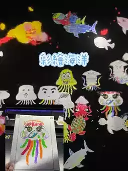 Painted Ocean: Visitors draw a pattern of fish or jellyfish on paper, and the pattern will then swim into the ocean in front of them as if it were injected with life.