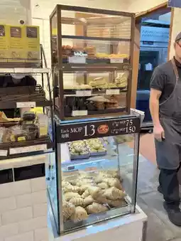 I took the free hotel shuttle to the Venetian, walked through the casino, and headed straight to the shopping center. With the help of Google Maps, I easily found Lord Stow's. The store isn't very large; one side is the counter and serving area, while the other side is for dine-in. Besides egg tarts, they also sell bread, cookies, and coffee. I expected a long queue, but it was just a normal crowd, possibly because it was a weekday or because I arrived after 8 PM. I got my egg tarts in about five minutes. I ate one immediately while it was still hot. The crust of Lord Stow's egg tart isn't as crispy as those in Hong Kong. The filling is creamy but not overly sweet or greasy, and it doesn't have a strong smell. The filling and crust blend perfectly, with neither overpowering the other. Eating 2-3 in one go is no problem.