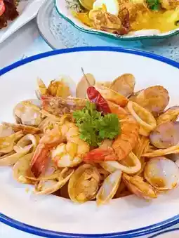 🍝Portuguese white wine flavored assorted seafood flat noodles