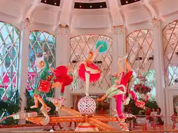 Wynn Palace offers luxurious accommodation, top-notch catering services, and spectacular public facilities, attracting visitors. The decoration of public spaces is extremely artistic and luxurious. With golden red and marble as the main decorative elements, with fine installation art and floral arrangements, it creates a magnificent atmosphere. With a Chinese style of elegance and with a fashionable and exaggerated beauty, every corner is like walking into a royal palace, which makes people stunned.