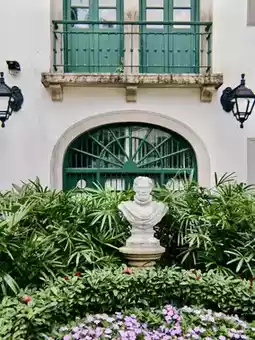 Stepping into the Museum of Portuguese Charm, the first thing that catches your eye is the unique light green exterior wall. The soft hue shines with a serene and elegant glow under the sunlight. This cluster of Portuguese-style buildings, with its exquisite arches and lines, exudes an exotic charm, as if transporting you to a distant Portuguese town. The walls are adorned with white decorative lines, and the combination of green and white colors looks particularly pure and captivating under the blue sky.