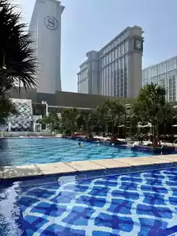 The hotel's View is also quite good, the window directly overlooking the Wynn Palace, more surprising is its swimming pool area, afternoon time guests are very few, almost can charter, and open air bubbles 🫧SPA, lying down to see the hotel huge building is too relaxing, recommended ❤️