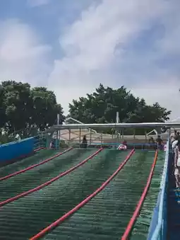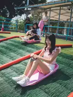 This skateboard is free! The skate is an artificial skate, the skate is not very sloped, there is no age limit, 5-year-old children dare to slide down by themselves, fun and safe. There are 4 slide lines in the skating area, so a family of four can slide down together. It's so cool! Because in unlimited play, everyone will go back up and then slide down after playing a turn. Infinite slippery π